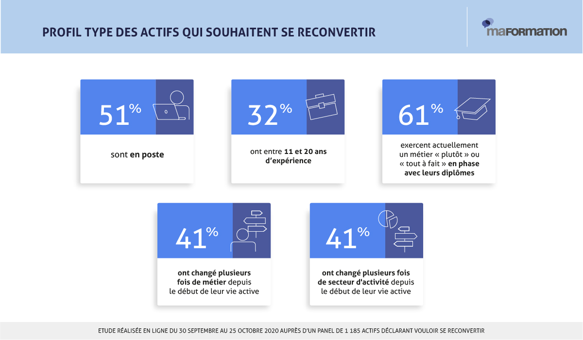 - 51% des actifs qui souhaitent se reconvertir sont en poste
