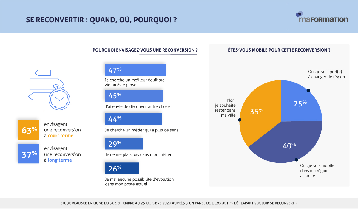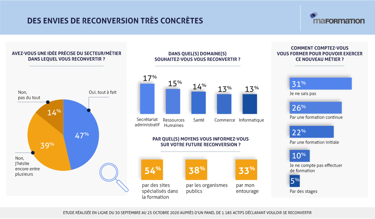- Seuls 47% savent exactement dans quel secteur/métier ils souhaitent se reconvertir