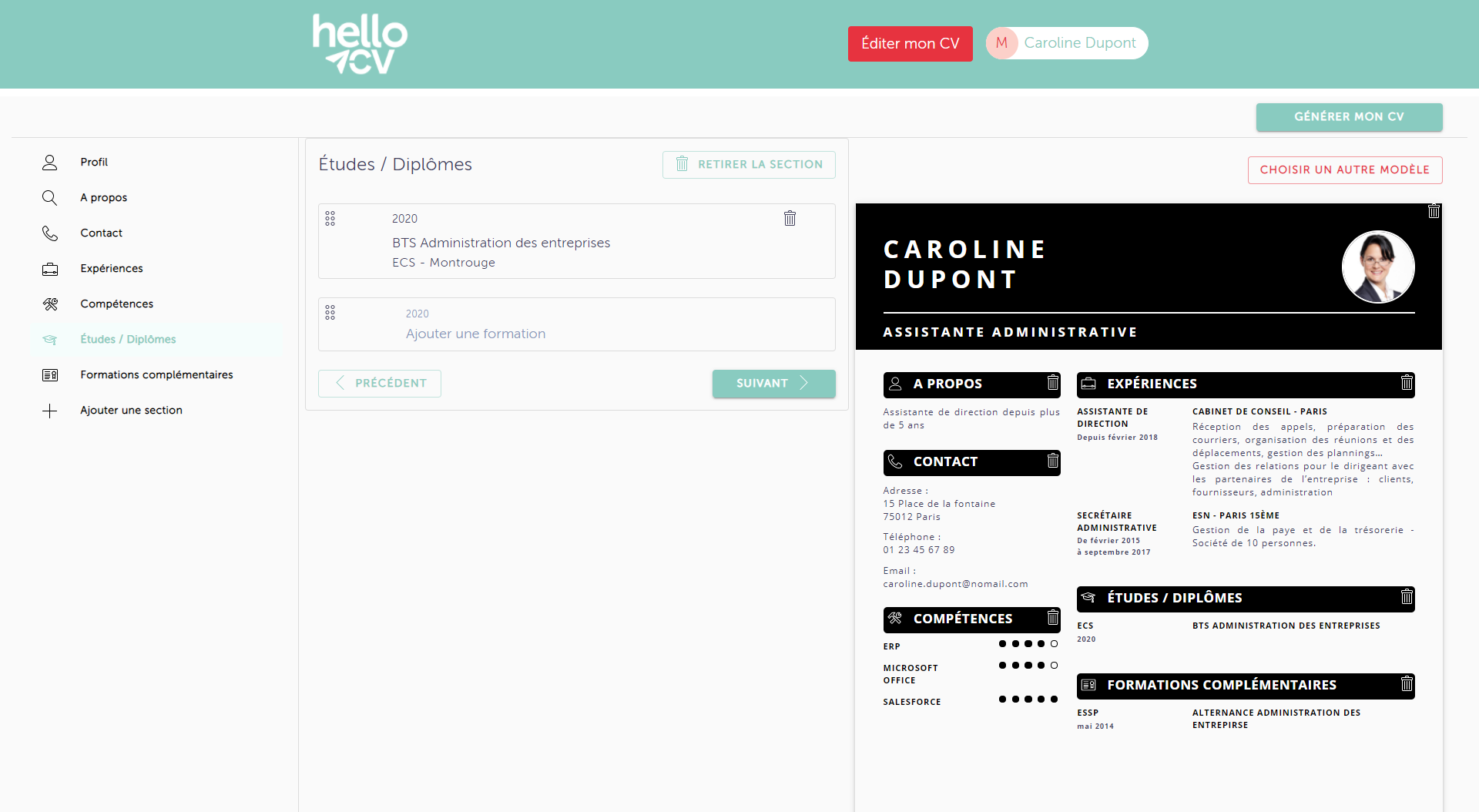Concrètement, HelloCV permet aux candidats de créer facilement et gratuitement un CV clair et « efficace » en facilitant notamment la création de celui-ci depuis un smartphone. Il leur suffit de choisir un modèle, des couleurs avant de saisir les informations sur leur parcours, leur expérience, … dans une interface très simple et intuitive.
