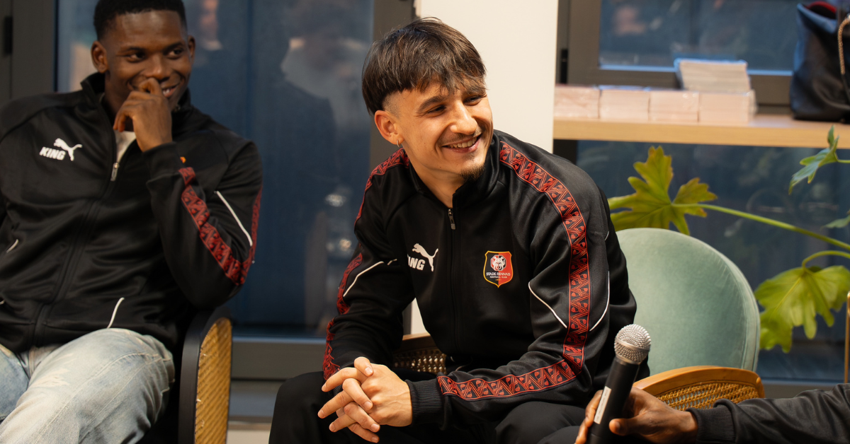 Ce mardi 9 décembre, cinq joueurs du Stade Rennais F.C. ont troqué le terrain pour les bureaux du groupe Hellowork. Une rencontre privilégiée avec les collaborateurs, placée sous le signe du partage d’expérience, de la performance et de la proximité.