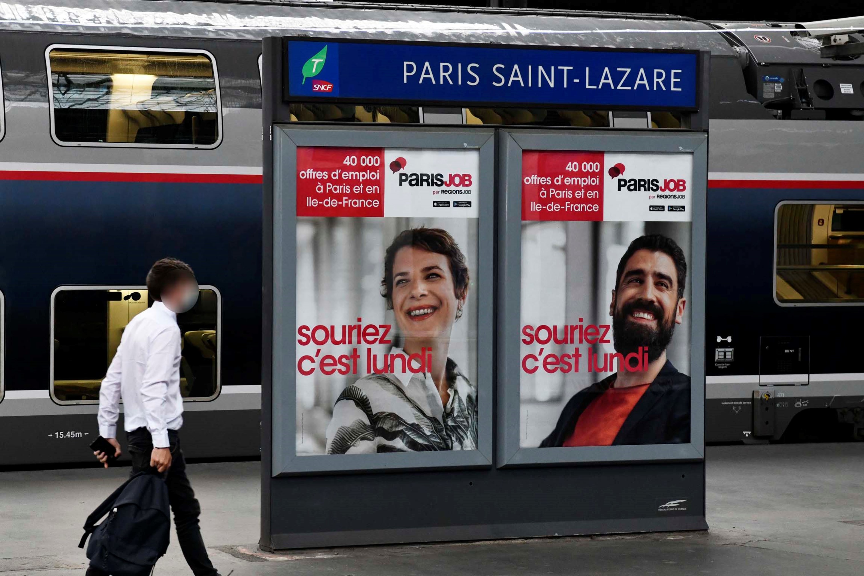 Du 6 au 14 septembre, les utilisateurs de 400 gares franciliennes pourront « aborder la semaine avec le sourire » avec plus de 800 faces portant le message « Souriez c’est lundi. Trouver le job qui va vous faire aimer le lundi 🙂 »